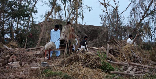 It caused destruction in Naqadpur, Macharala, Eid-Gah, Dera Bhattian and Bahadarpur villages of Head Marala district of Sialkot. The houses were tore into pieces, electirc poles, trees, sign boards were uprooted and many people were buried alive. According to the local people of the village every thing went from grey to severe dark. One person said,”It was raining and winds were strong but then suddenly very intense thunder occurred and dark clouds started to touch the ground and within mintutes every thing (including tractors) was flying”. Atleast 20 people are dead with over 40 injured due to this storm.