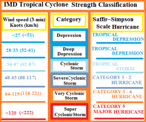 The IMD has also been criticised by the World Meteorological Organization (WMO) for its poor performance in 2007. In June 2007, Cyclone Yemyin was about to hit Balochistan region of Pakistan as a weak category-1 hurricane with winds upto 75 mph on the Saffir–Simpson Hurricane Scale (SSHS) but according to the IMD it was a mere tropical depression with winds upto 35 mph.