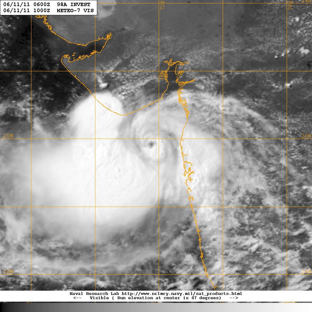 The last two major cyclones in Pakistan were Cyclone Onil 2004 and Cyclone Yemyin 2007. Cyclone Phet in 2010 was a depression when it came to Pakistan. Onil killed 9 people in Karachi with 40 mph winds and 32 mm rainfall, However 92 mm rainfall lashed Hyderabad that caused the entire drainage system to collaspe. Yemyin killed 200 people in Karachi with 70 mph winds and 110 mm rainfall, it made landfall near Gwadar. You can reach these previous cyclone articles that PWP made in March, April and May;