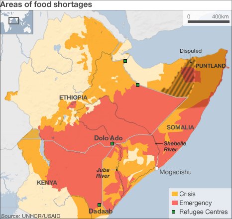 In Somalia, a total of 3.7 million people are suffering from drought. Consecutive droughts have affected the country in the last few years, while the ongoing conflict has made it extremely difficult for agencies to operate and access communities in the south of the country. Officials warned that unless urgent action was taken the areas afflicted by famine would grow. The UN said the humanitarian situation in southern Bakool and Lower Shabelle had deteriorated rapidly.