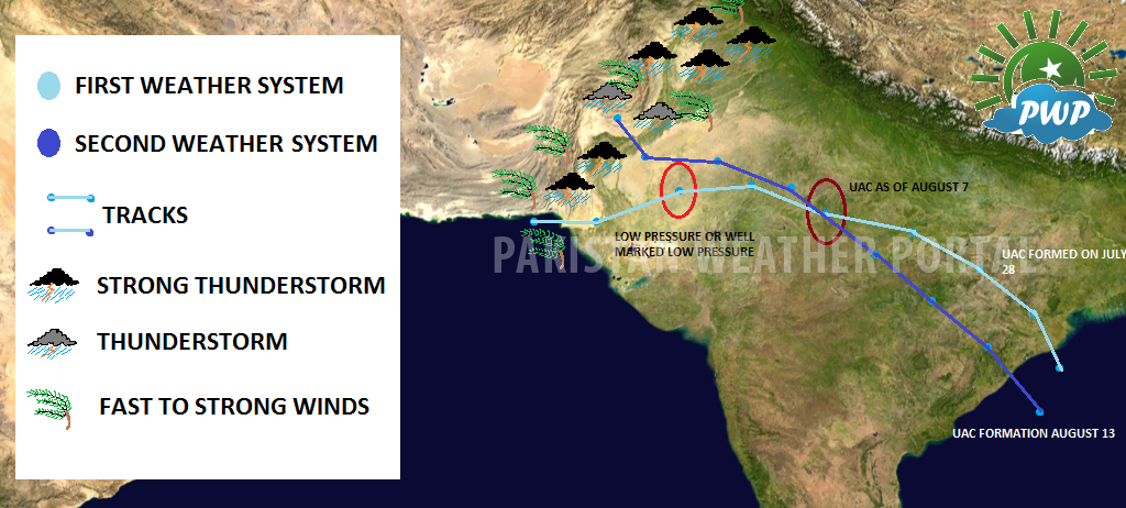 The upper air cyclonic circulations (UAC) over Utter Pradesh is likely to intensify into a low pressure in next 2 days (August 8 or August 9) now, it will acquire a south-west track before reaching Sindh on August 10/August 11. Certain models suggest it to intensify into depression, but it is more likely to become a low pressure or well-marked low.