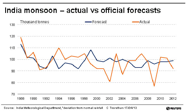 “Monsoon 2013 would set in early this year in India due to the formation of a low pressure in Bay of Bengal, overall it could be normal on the wider scale in Pakistan and India due to the neutral ENSO conditions in the Pacific ocean till October. Pakistan can get monsoon rains during the first week of July. Westerlies and Easterlies interaction could lead to heavy flooding rainfall over the rivers of Punjab and Khyber Pakhtunkhwa, westerlies could increase their presence in late May and June. Rains could be normal in southern areas while near normal in northern areas. North-eastern Punjab and Azad Kashmir can witness some frequent heavy downpour in the month of July. Slight possibility of pre-monsoon activity in Sindh and North-eastern Punjab only. However an event of isolated flash flooding/urban flooding (happens every year) can never be ruled out.”
