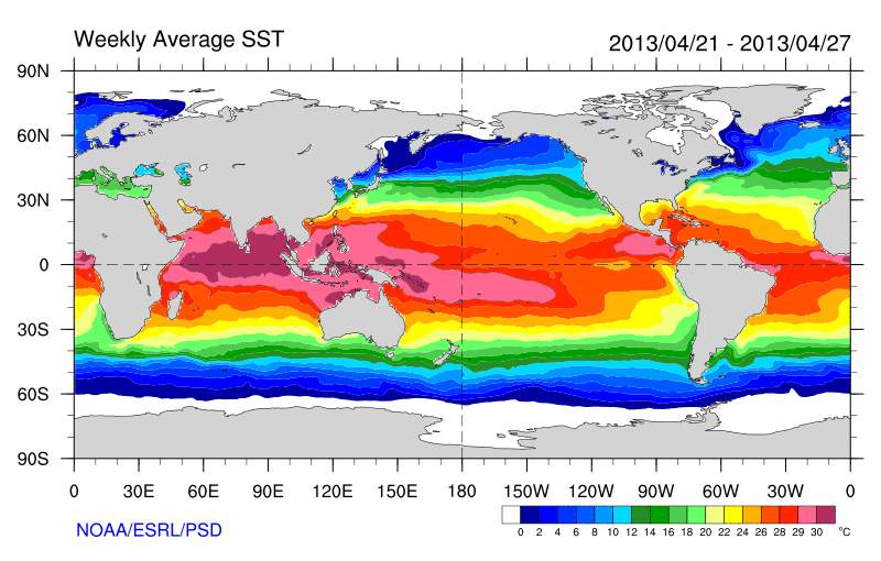 Temperatures are higher in the Indian ocean as mentioned in the PWP’s article in early April which could favour any tropical activity in the both the basin that is Bay of Bengal and Arabian sea, temperatures are very high in the southern and south-western Bay of Bengal. Above 30°C have been recorded in the Bay of Bengal which could favour formation of a strong tropical cyclone during this week. Temperatures are rising in the Arabian sea as mentioned by PWP in early April, 29°C was the temperature recorded in south-eastern Arabian sea. Bay’s system could churn into a strong tropical cyclone.