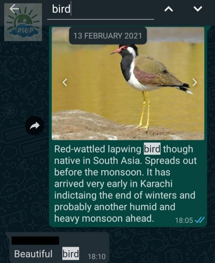 While discussing on WhatsApp, we found the bird in Karachi’s DHA (South) on February 13. We uploaded a stock image of Lapwing bird for our own record so that it is convenient for us to search the chat.
