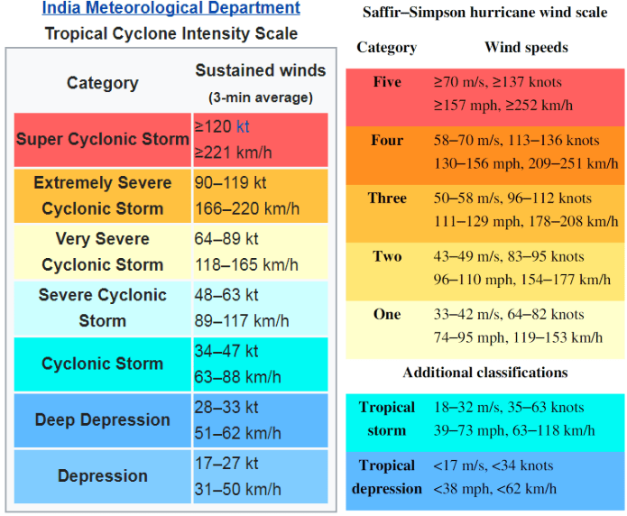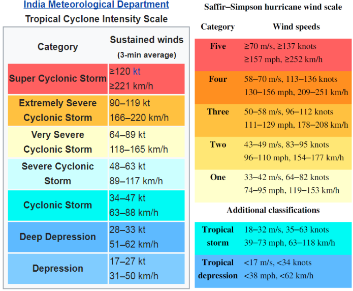 Scale used by IMD to categorize the storm