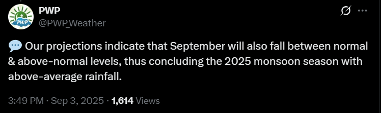Whereas Karachi experienced a monsoon season in 2025 with 304.4 mm of rainfall, surpassing the average of 155.6 mm, which was calculated using data available up to 1990-2020. Hence, an overall above-average monsoon season was projected by PWP!